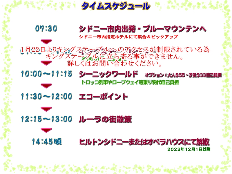 一時閉鎖に伴い弊社のブルーマウンテンツアーの内容は下記のように変更しております。